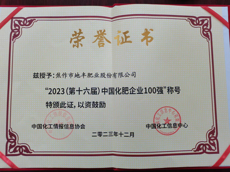 2023年復(fù)合肥料產(chǎn)品質(zhì)量優(yōu)秀獎(jiǎng)