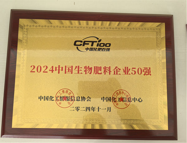 100 強”和“中國生物肥料50強”榮譽稱號。